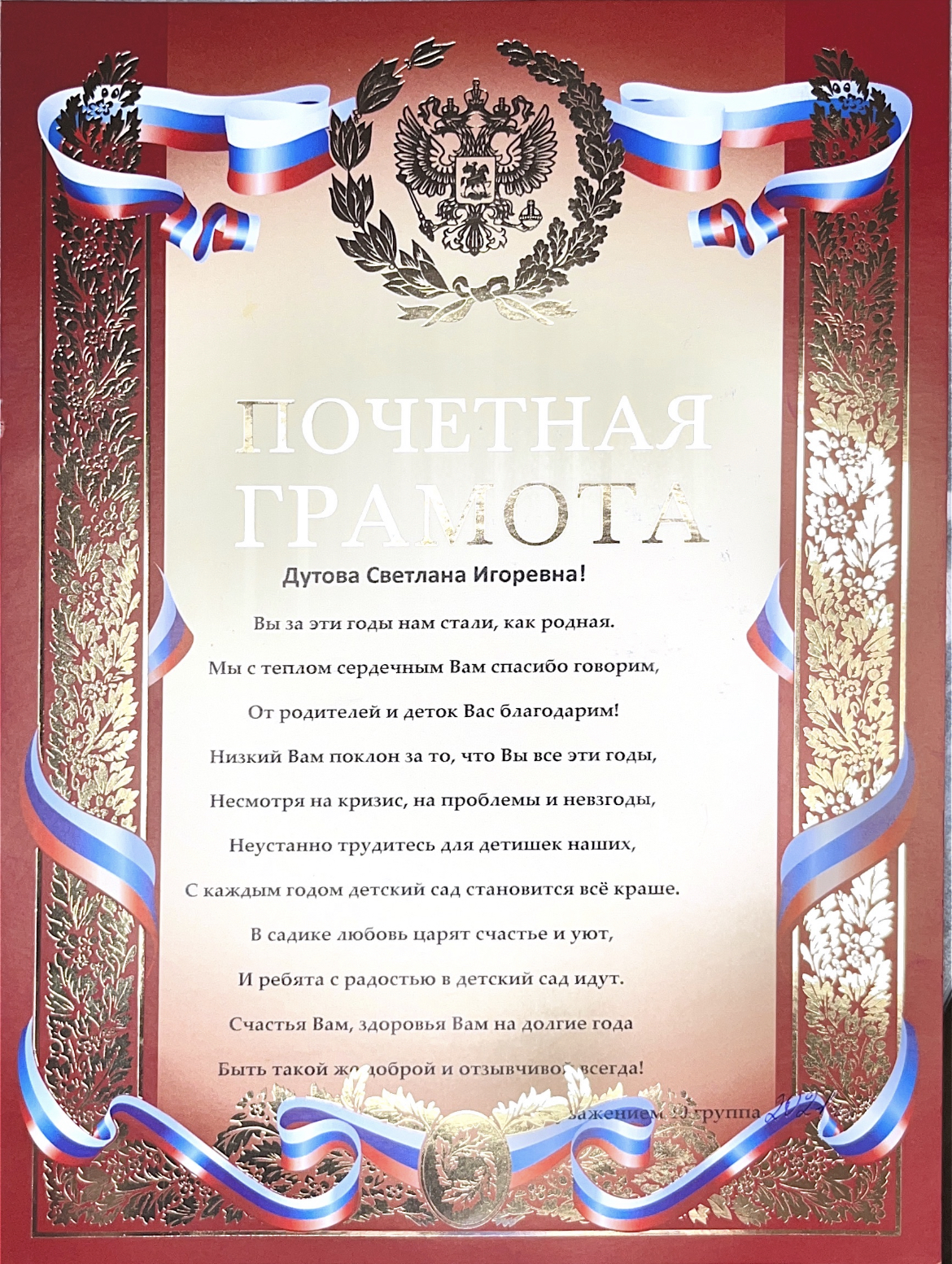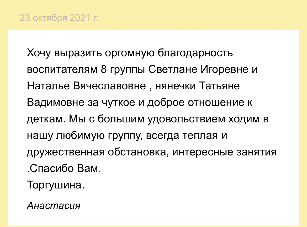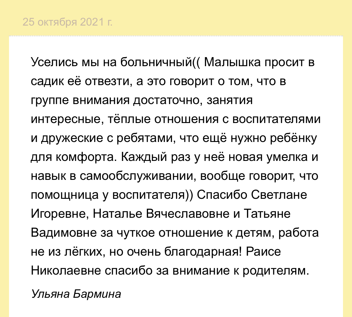 (выдан: Старшим воспитателем Овчаренко Р.Н., 01/09/2021)